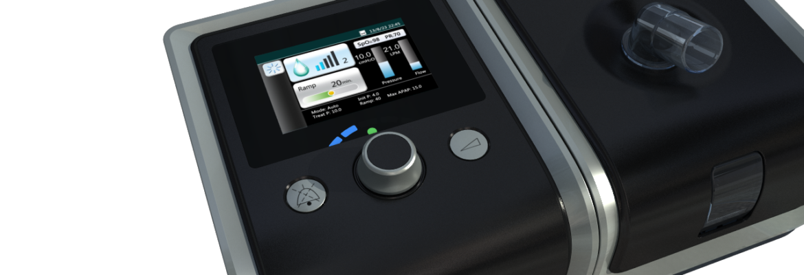 Esta é a segunda geração dos CPAPs RESmart, com novo design, mais leve, menor, uma tela LCD 2,4″ colorida e um novo botão de ajuste.